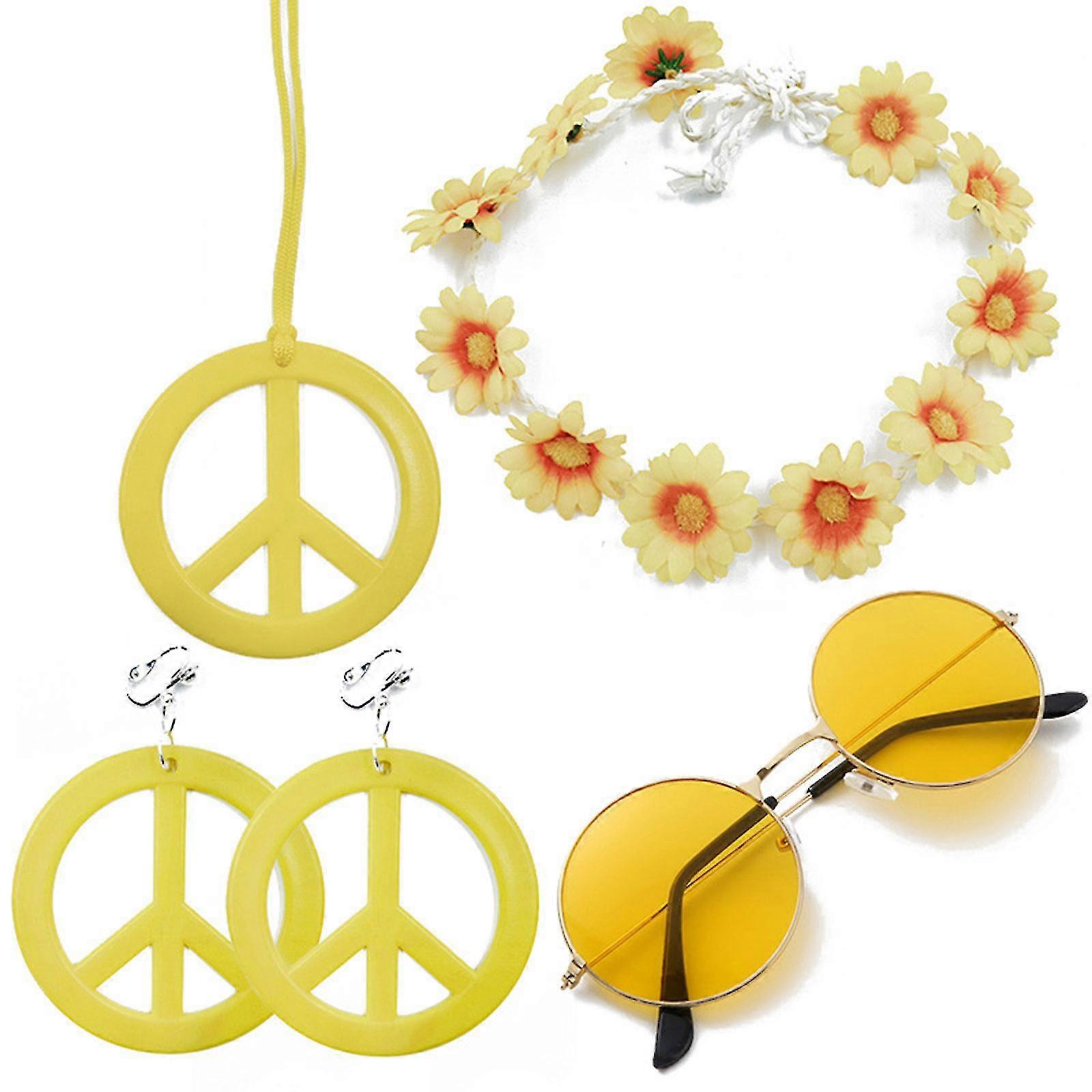 70s Women Hippie Costume Accessories Pink Hippie Disco Outfit With Sunglasses, Headband, Peace Sign Necklace And