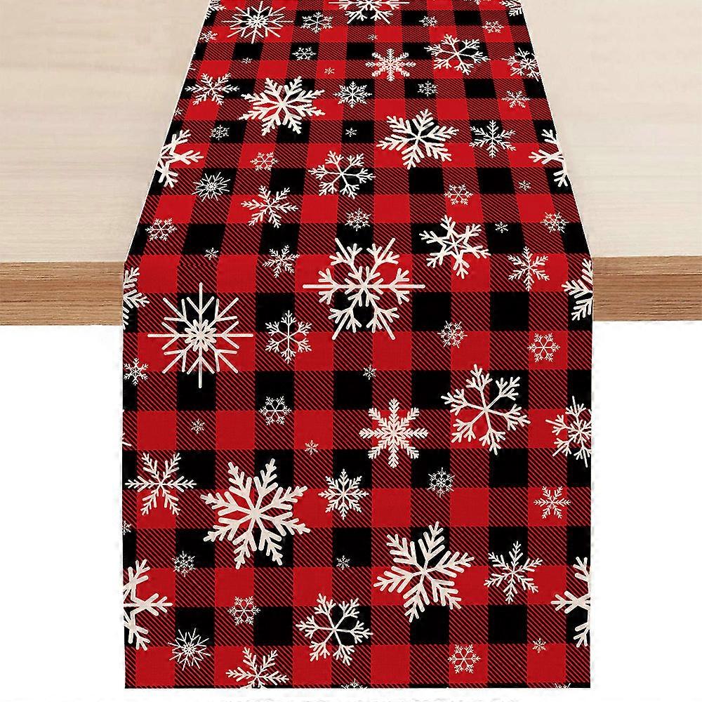 72 Inch Christmas Runner Snowman Elk Christmas Tree Truck Buffalo Plaid Red Farmhouse Xmas Table Decoration Winter Holiday Table Runner