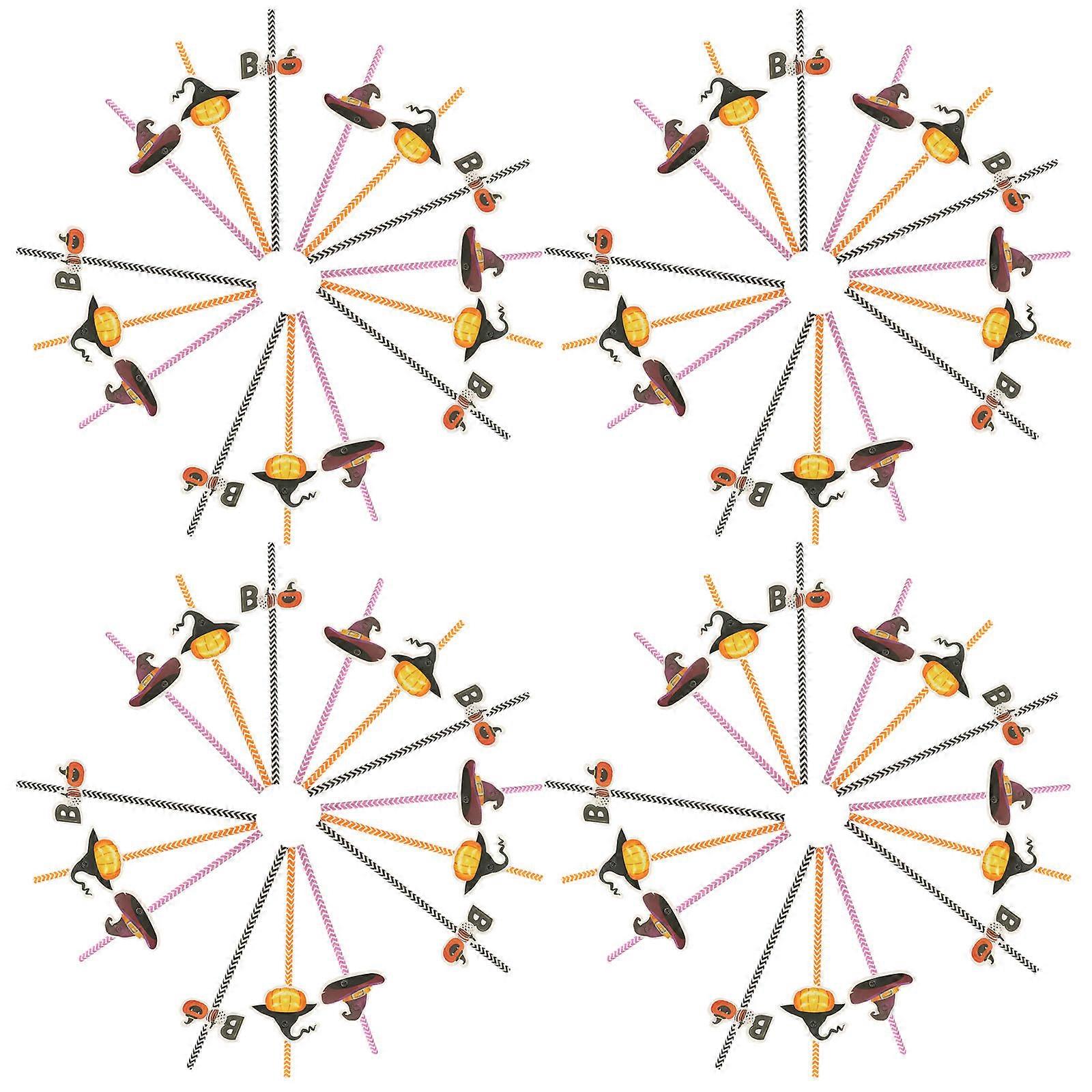 72pcs Halloween Party Paper Drinking Straws with Pumpkin, Witch Hat & Spooky Cardboard Decorations for Cocktails & Beverage Celebrations