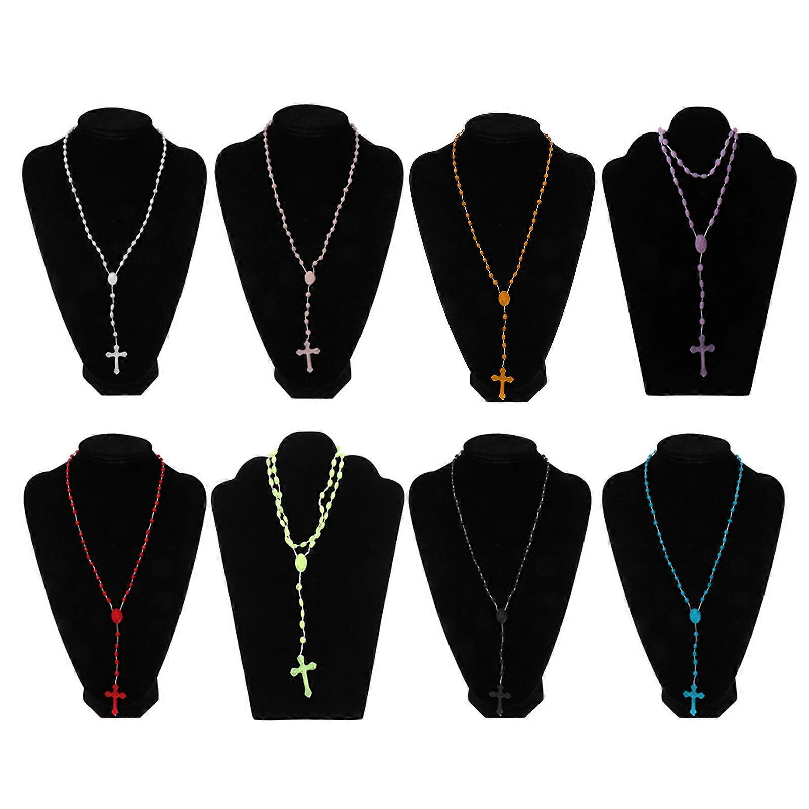 8 Colors Plastic Noctilucent Necklace Rosary Beads Luminous Necklace Catholicism Prayer Religious Jewelry for Daily Wear