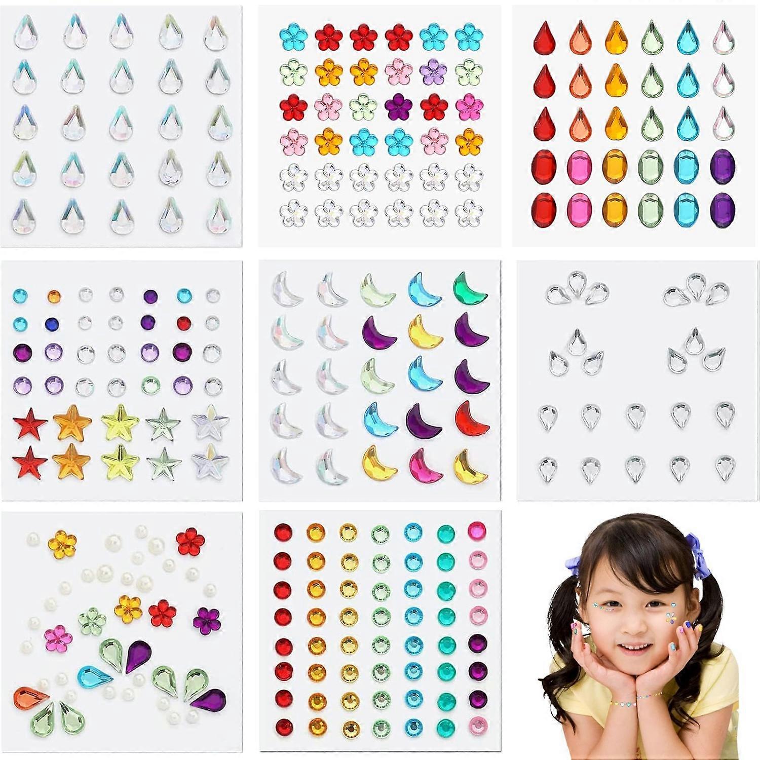8 Sheets Face Decals, Self-Adhesive Face Diamonds, Including Stars, Flowers, Drop Shape.