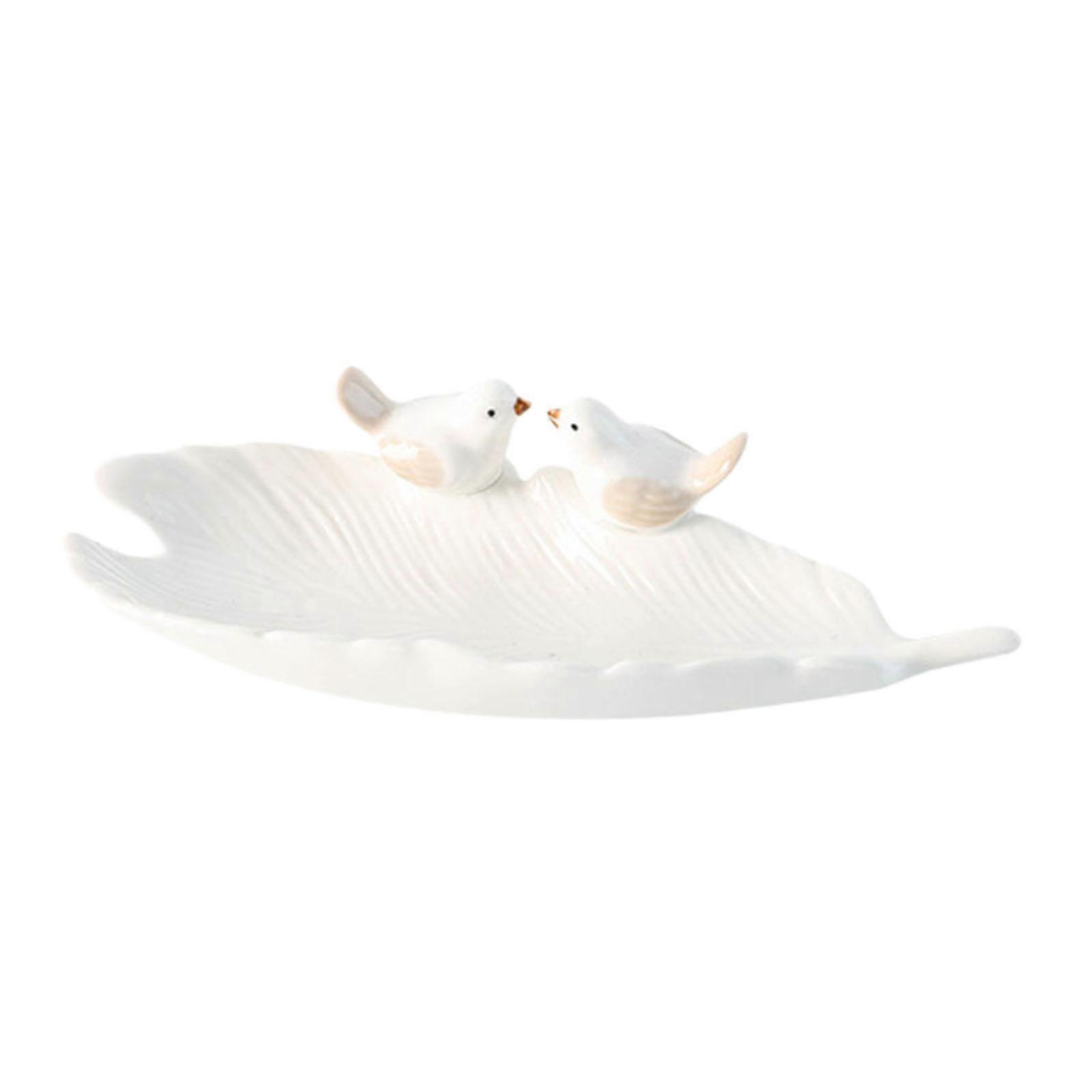 8inch Ceramic Leaf Earrings Jewelry Tray Candy Plate for Dresser, Front Door White