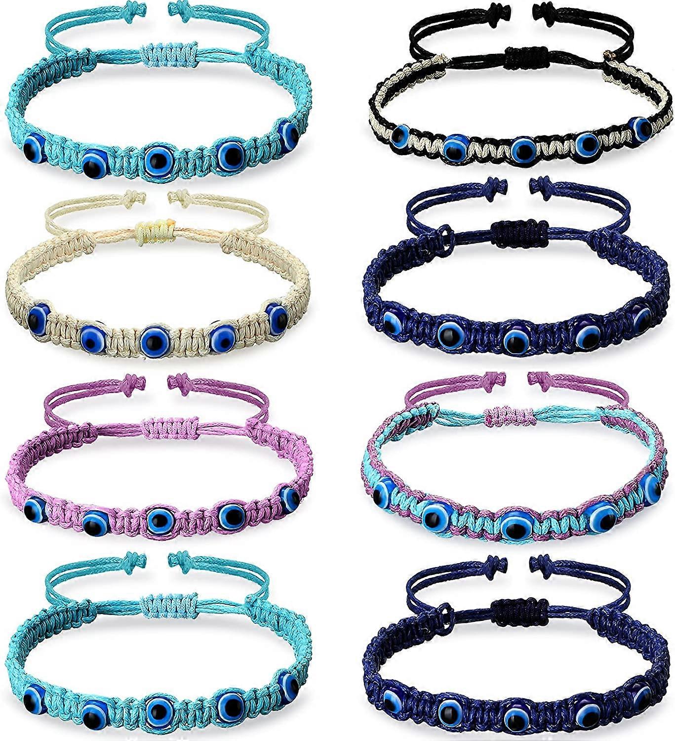 8 Pieces Evil Eye Beaded Bracelet Adjustable Blue Evil Eye Rope Bracelets Kabbalah Protection Friendship Bracelet Hand Woven Turkish Lucky Protection