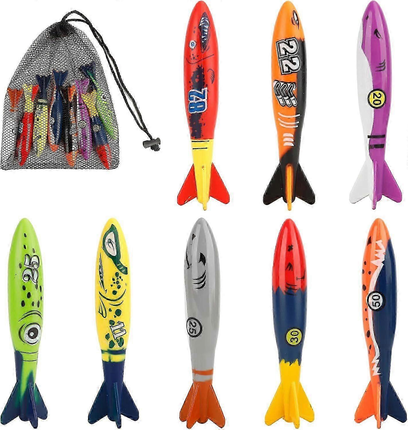 8 PCS Diving Torpedo Pool & Bath Toys - Kids Toddlers 4 - 8 Summer Swimming Games Beach/Water Play & Party Favors