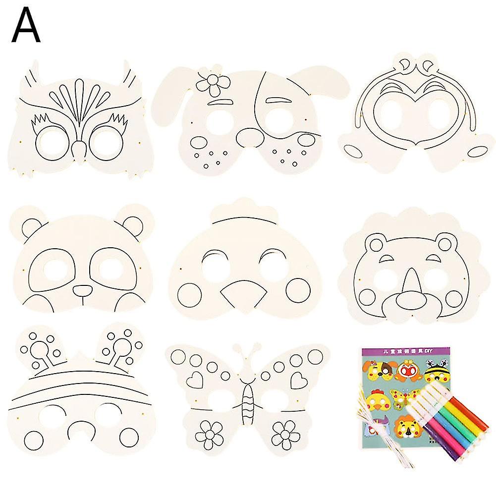 8pcs Cartoon Animal Paper Painting Mask Color Pen Graffiti Diy Art Craft Kid Toy