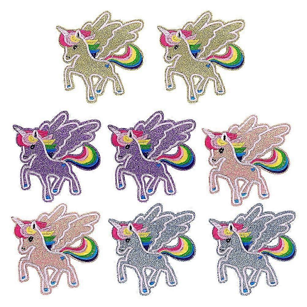 8pcs Glitter Unicorn Embroidered Sewing Patch Lovely Applique Clothes Dress Embroidered Sewing Applique Diy Accessory for T-shirt Jeans(4 Pattern in 1