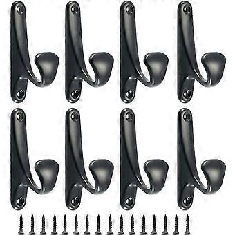 8 Pcs Modern Coat Hooks, Metal Clothes Hooks with 16 Screws, Wall Hooks Clothes Hat Hooks, for Hanging Coat, Hat,Towel (Black)