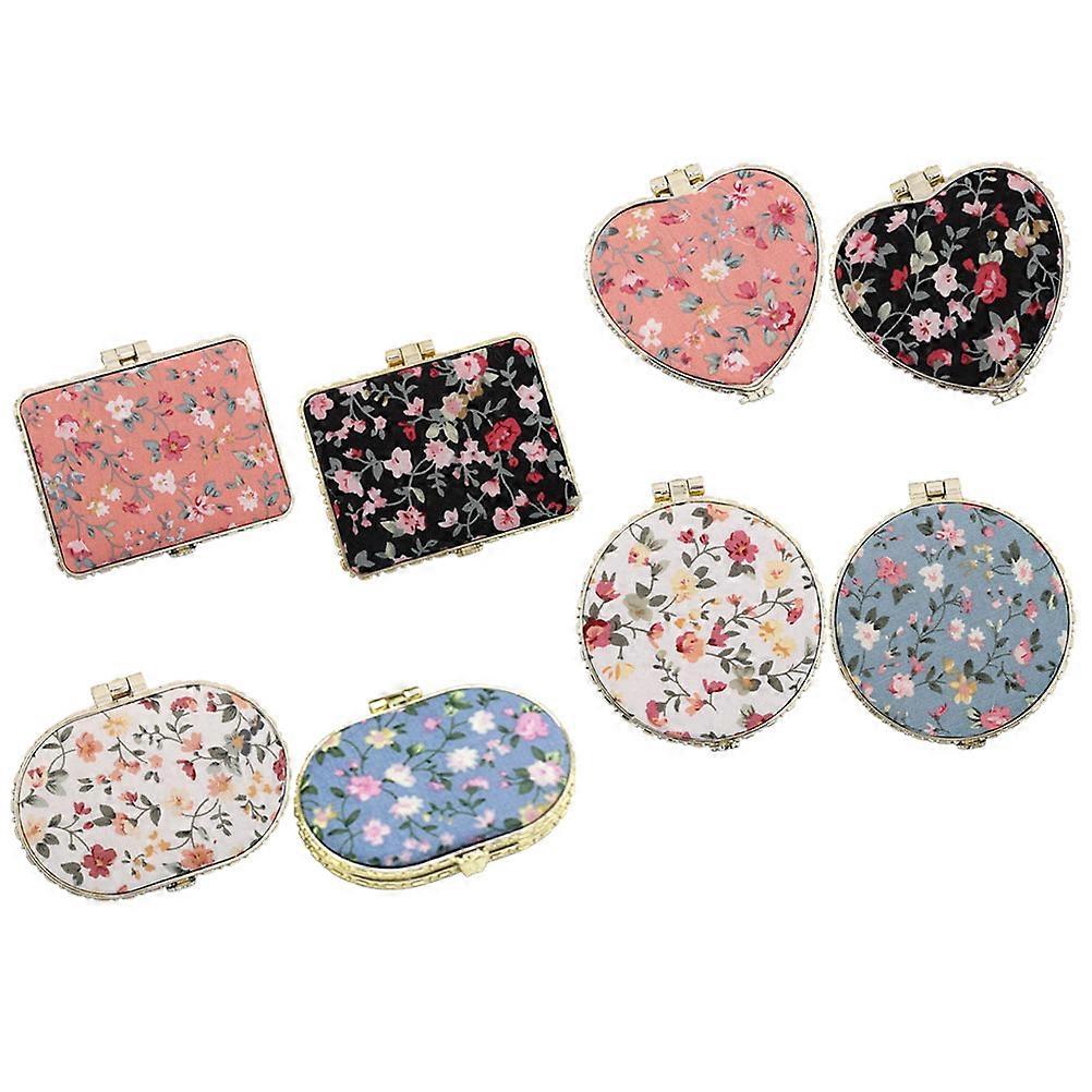 8pcs Vintage Flower Print Pocket Mirrors Lightweight Travel Makeup Compacts for On the Go Touch Ups