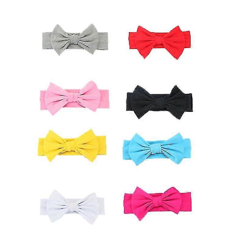 8pcs Headbands Hair Bows Elastic Hair Bands Head Wraps Headwear For Newborns Babies Girls (red/blue/yellow/black/white/rosy/grey/pink)