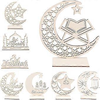 8 Pcs Eid Mubarak Wooden Decor Eid Mubarak Ramadan Wooden Plaque Ornament For Happy Eid Mubarak Ramadan Home Room Table Decoration Craft Art