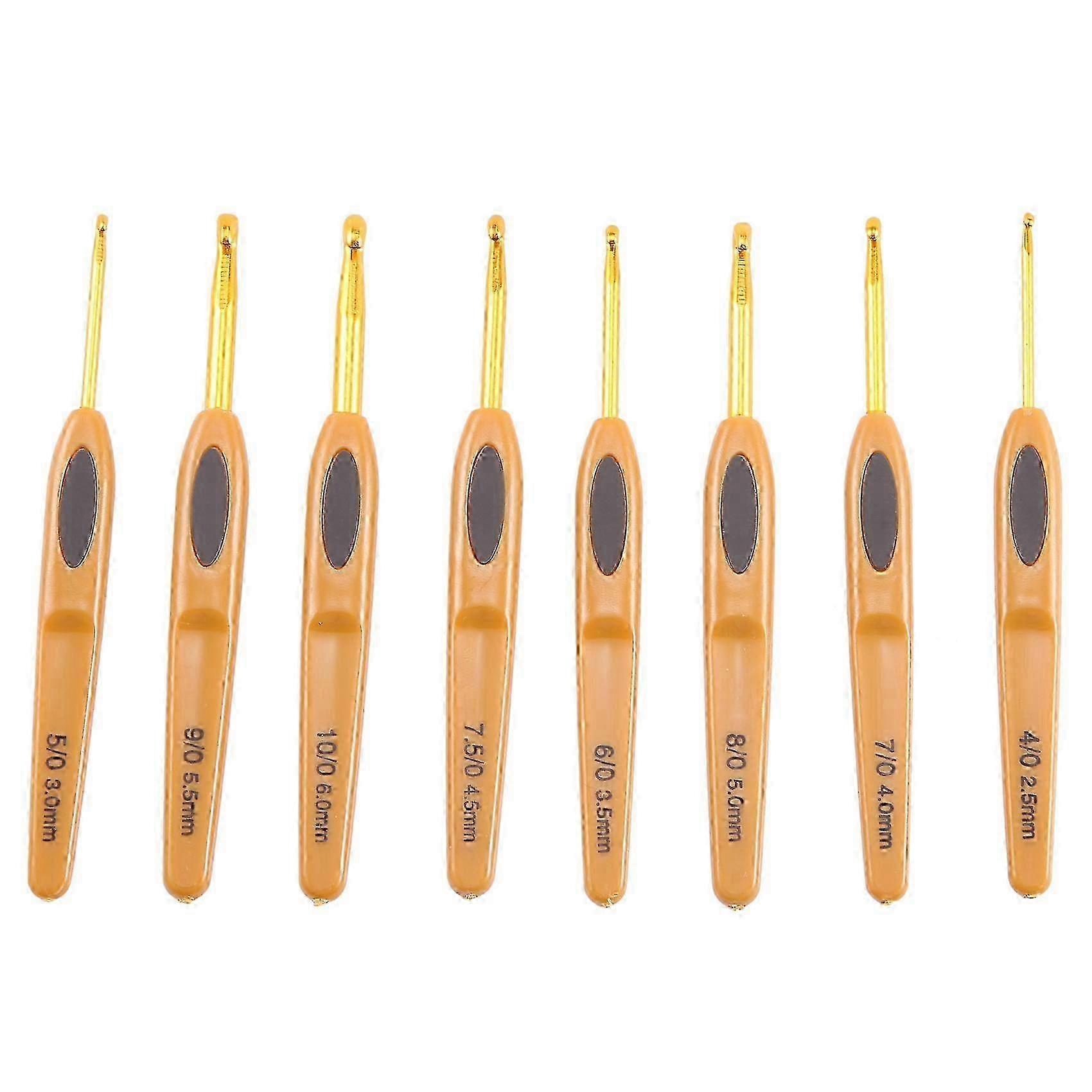 Type: crochet hook Crochet size (.): 8 specifications Use: Hand Sewing Model Number: needle crochet hooks Type: Sewing Machine Parts Smooth hooks, no snagging on yarns. Soft handle material: provide a comfortable hand feeling. Sweater crochet needle weaving tool set. Suitable for most crochet works. It can fundamentally meet your knitting needs. colour:goldandbrown Material:Plastic handle, aluminum crochet size:About2.5mm,3.0mm,3.5mm,4.0mm,4.5mm,5.0mm,5.5mm,6.0mm Package Contents: 8 x Crochet Hook Only the above package content, other products are not included. Note: Light and different displays may cause the color of the item in the picture a little different from the real thing. The measurement allowed error is 1-3cm.