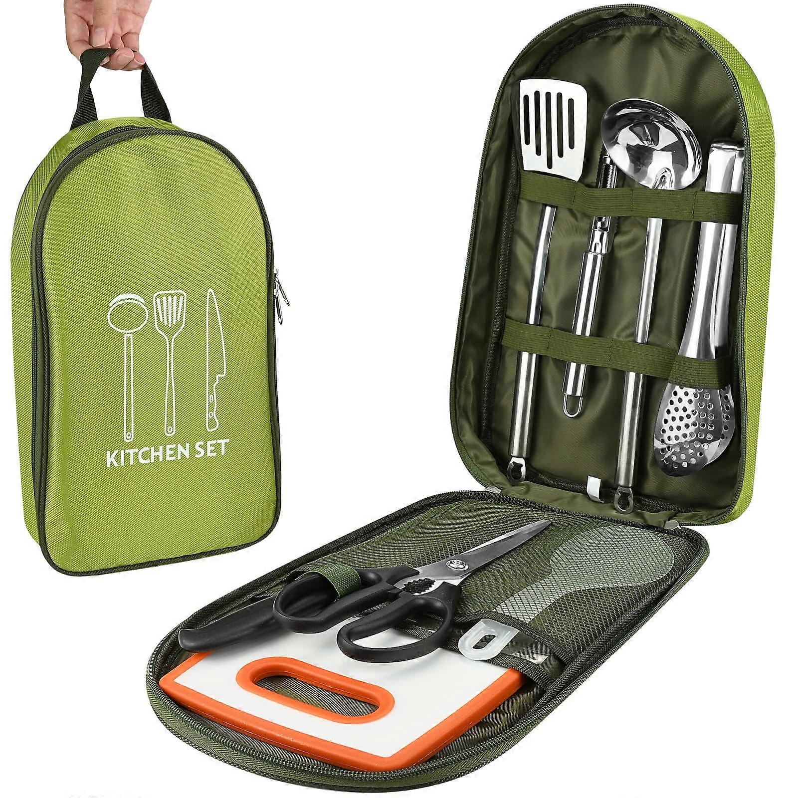 8 Pcs Camping Cooking Set, Portable Outdoor Cookware Utensils, Kitchen Cutlery Set with Multifunctional Stainless Steel Cutlery and Waterproof Storage