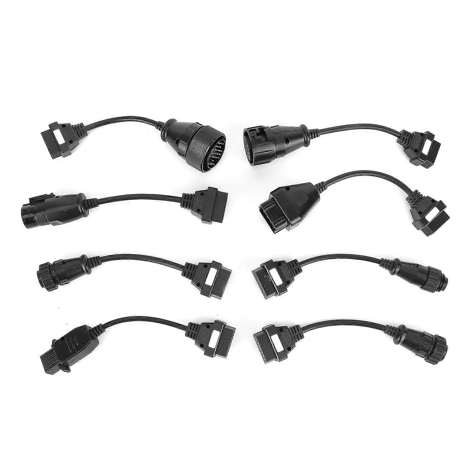 8pcs Set Truck OBD2 Connector Extension Cables - Black, DC 12V Auto Diagnostic Tool