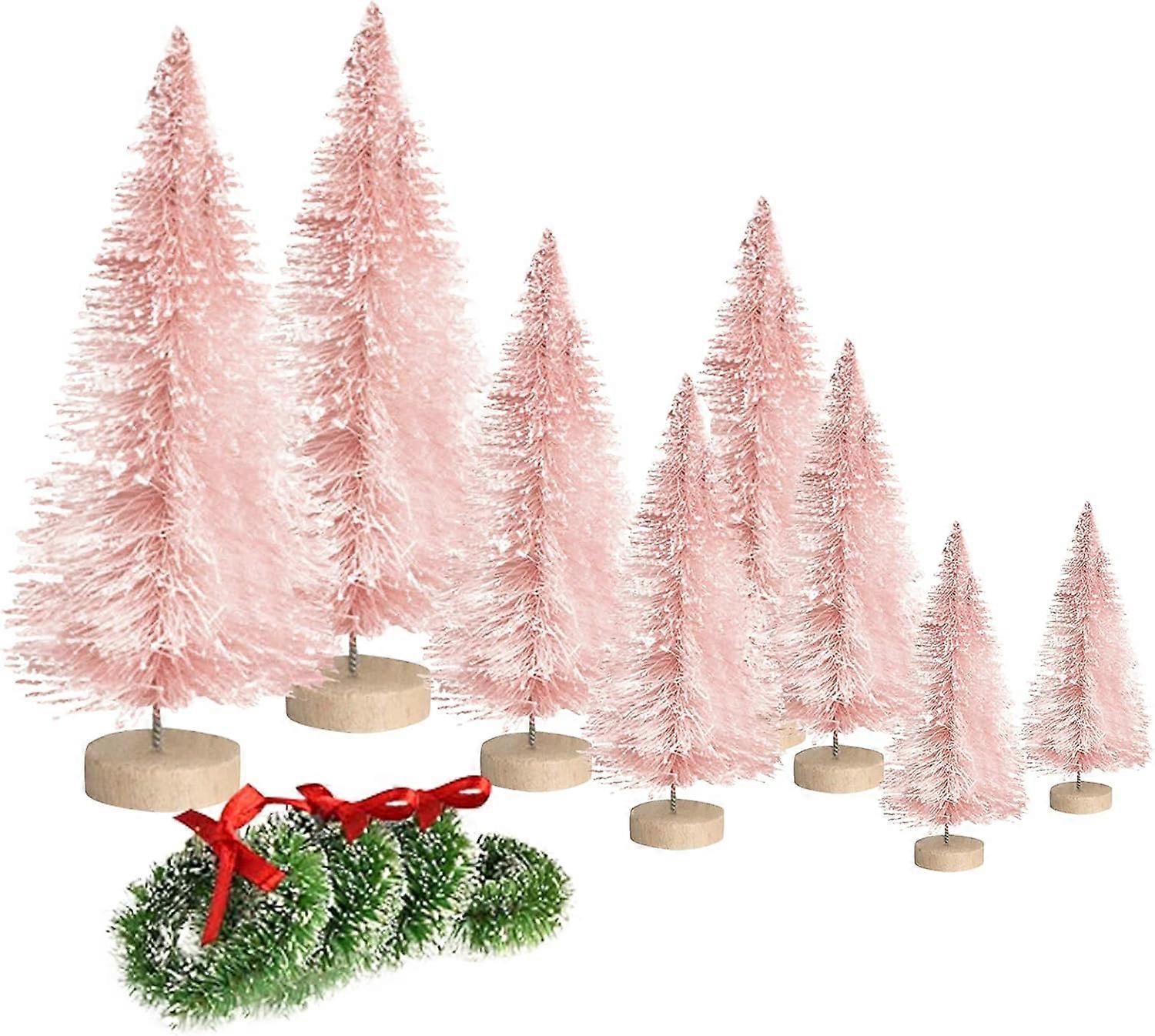 8pcs Miniature Christmas Tree Wooden Base Desktop Miniature Xmas Tree Decors