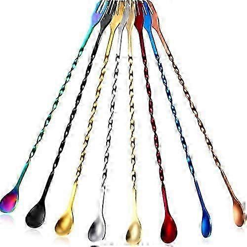 8 pieces Cocktail Spoon Stirring Bar Mixing Long Spoon Stainless Steel Spiral Pattern Cocktail Stirrers spoons, 10 Inch,8 Colors