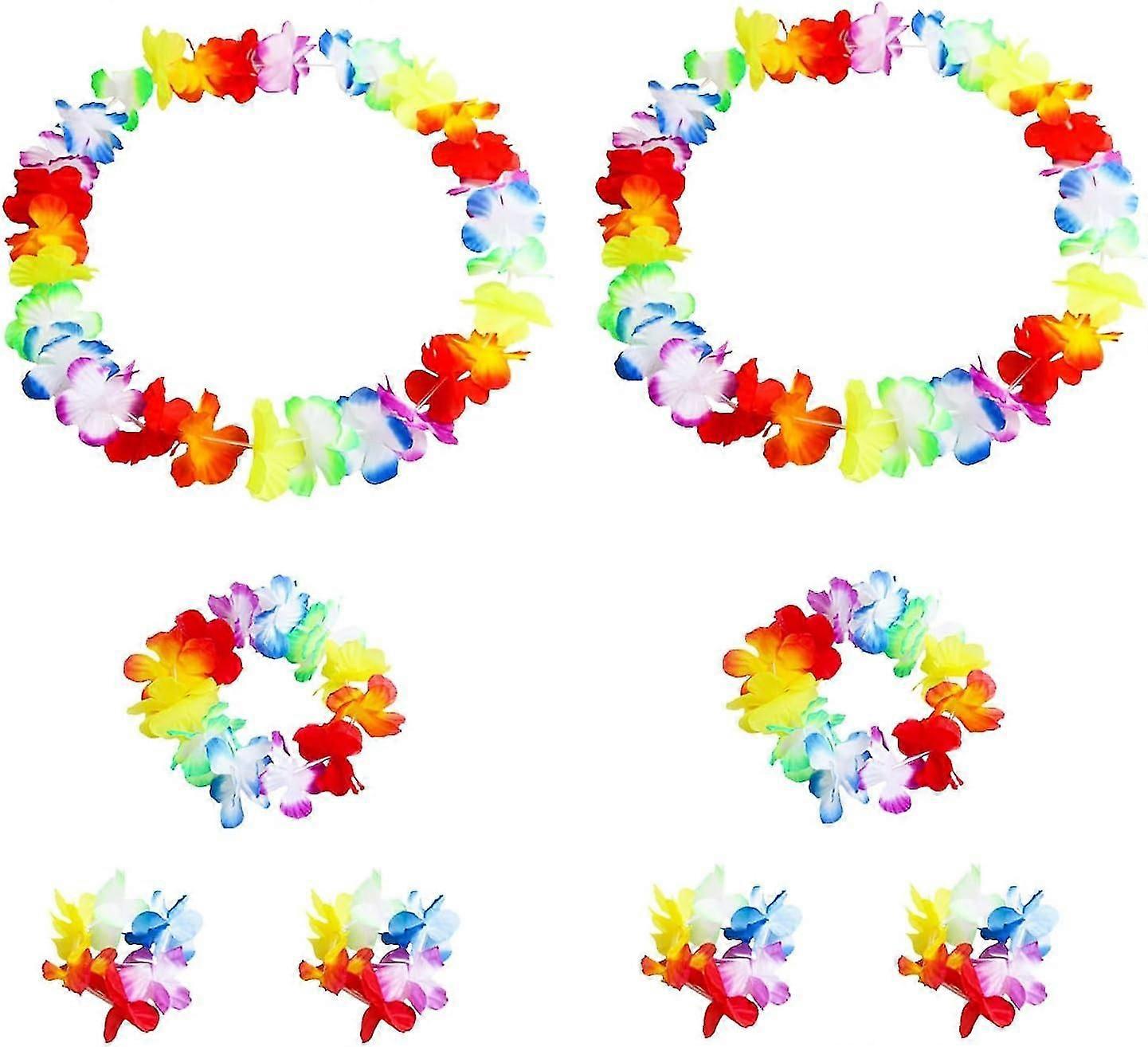 8Pcs Hawaiian Garlands Necklace Headbands Bracelet Set - Tropical Hawaiian Luau Flower Lei Party Favors, Hawaiian Fancy Dress Colorful Hawaiian-2025