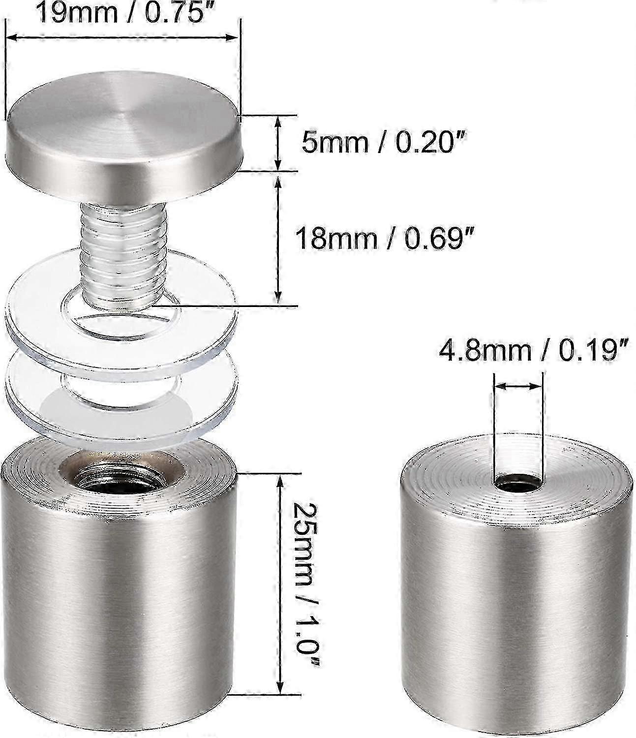 8pcs 3/4 Dia x 4"(19x100mm) Standoff Screws Wall Mount Sign Holders Acrylic Glass Nails
