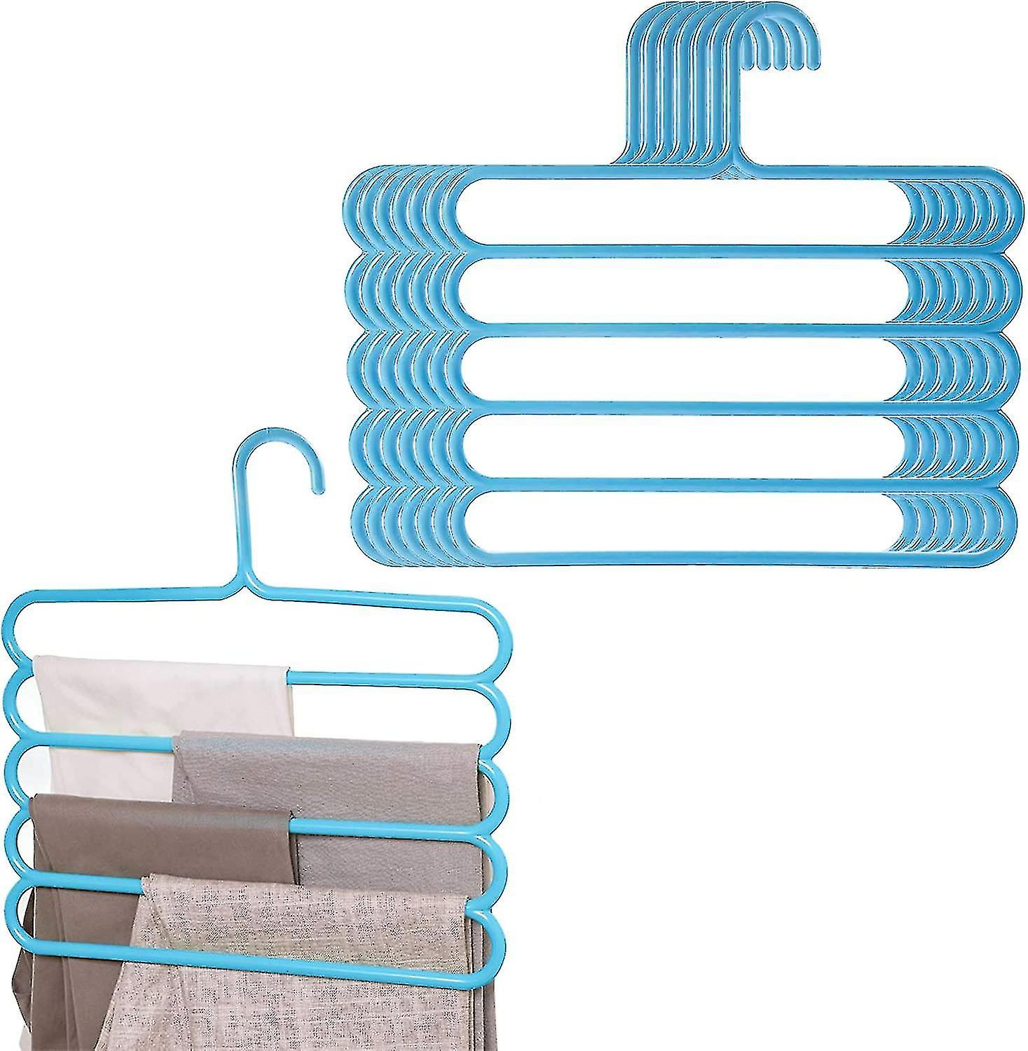 8pcs 5 Layers Pants Hangers, Multi-layer Trousers Hangers, Plastic Non-slip Space Saving Closet Storage Organizer For Pants Jeans Trousers Tie Skirts