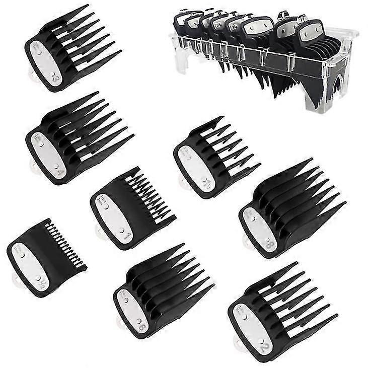 8 Cutting Guide Comb Compatible With Wahl Hair Clippers, 8 Black Stainless Steel Limit Comb Set Guide Combs Accessories 45.5mm B X 38.5mm H