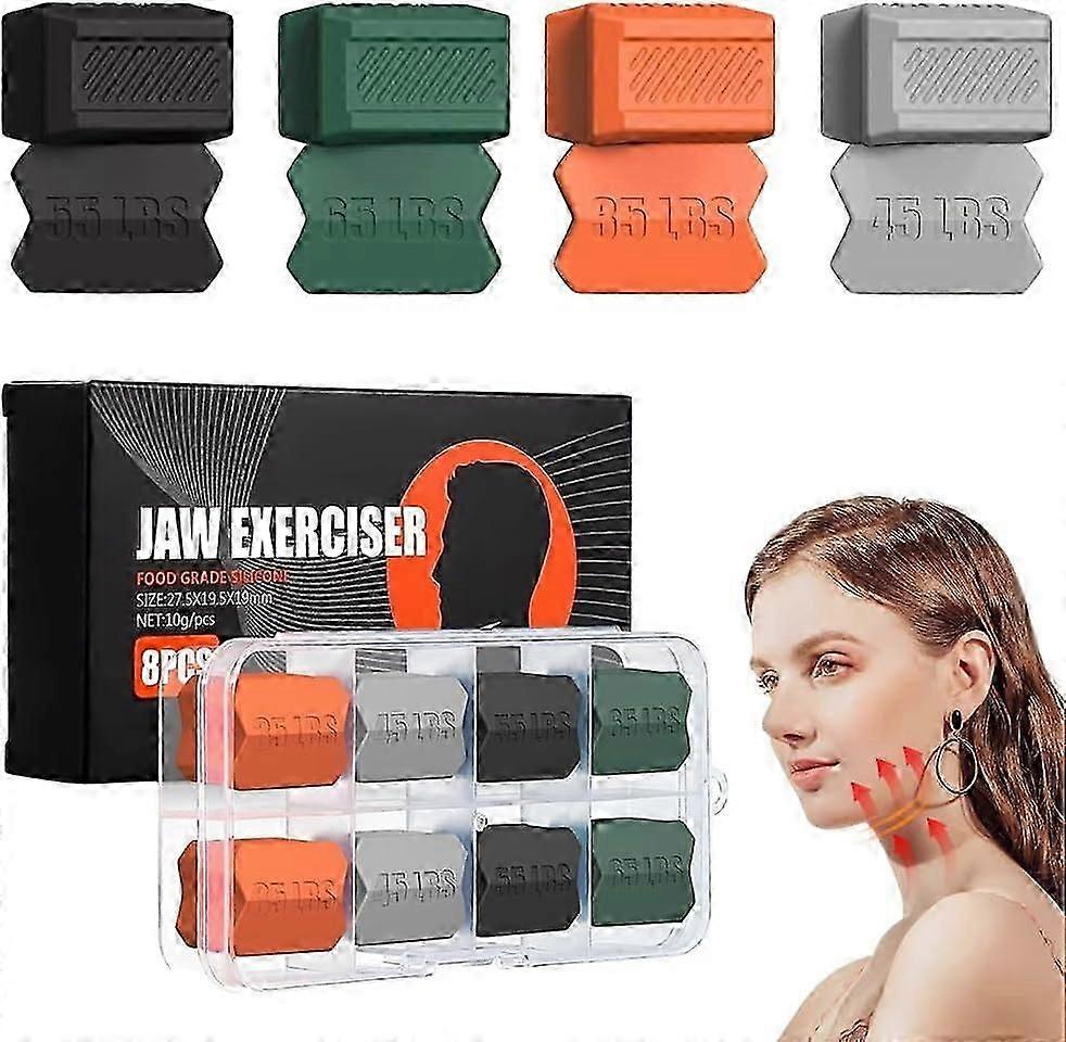 ExquisiteSet of 8 Jaw Exerciser for Men & Women,4 Resistance Levels Silicone Jawline Shaper with Case,Slims & Tones Face Powerful Jawline Trainer,Faci
