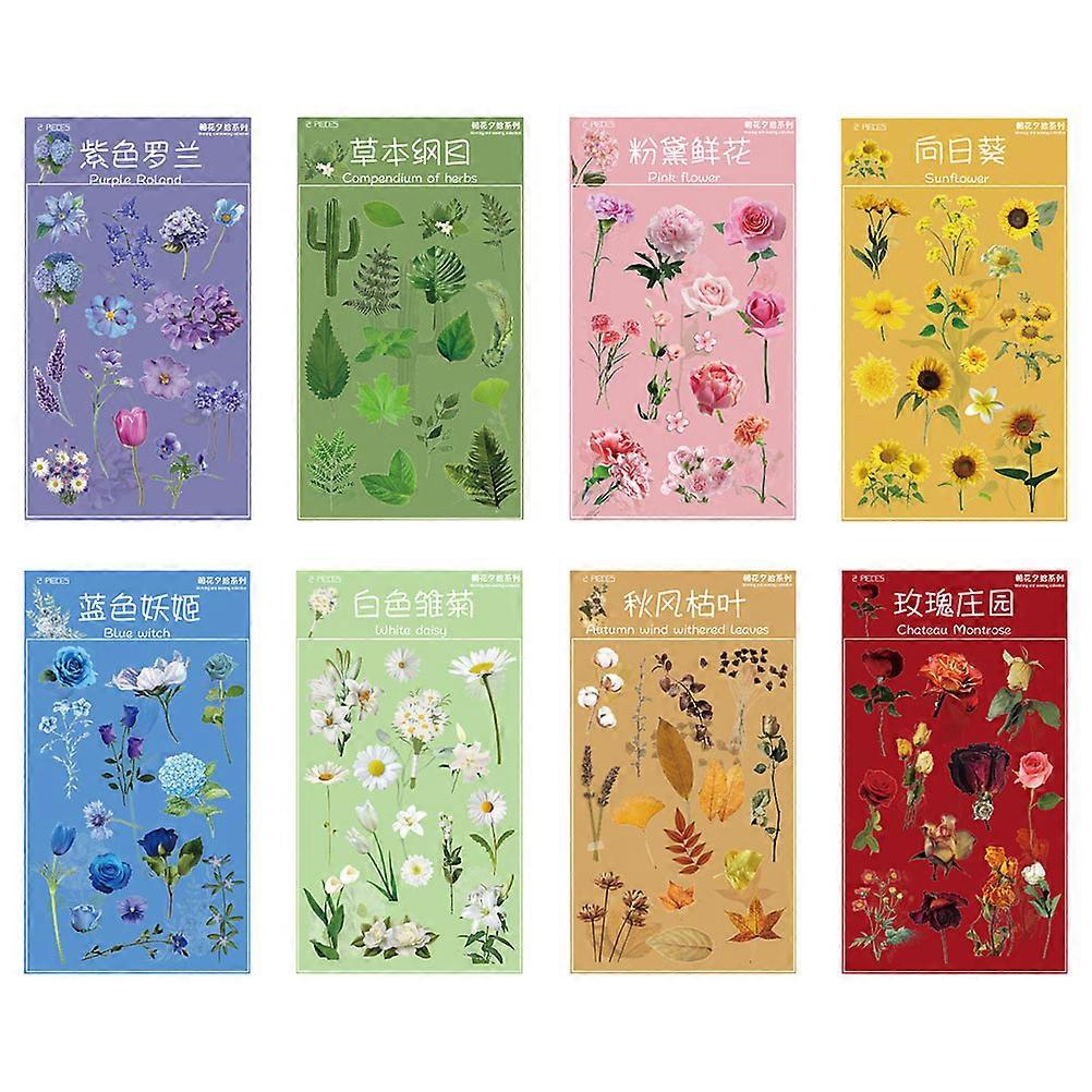 8 Sheets of Decorative Scrapbook Stickers Multi-function Plant Stickers Flower Stickers (Random Style)