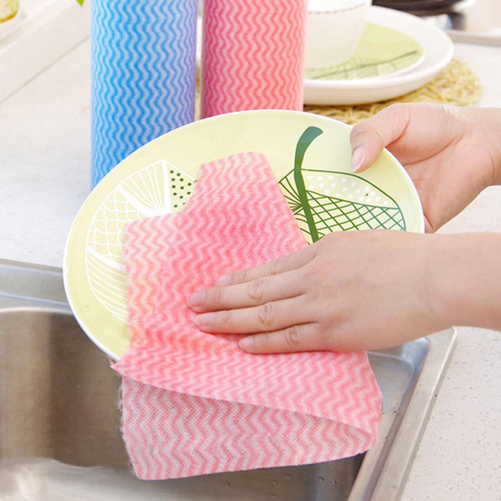 80pcs Disposable Non stick Oil Non woven Fabric Duster Dish Cloth Hand Towel Kitchen (Pink)