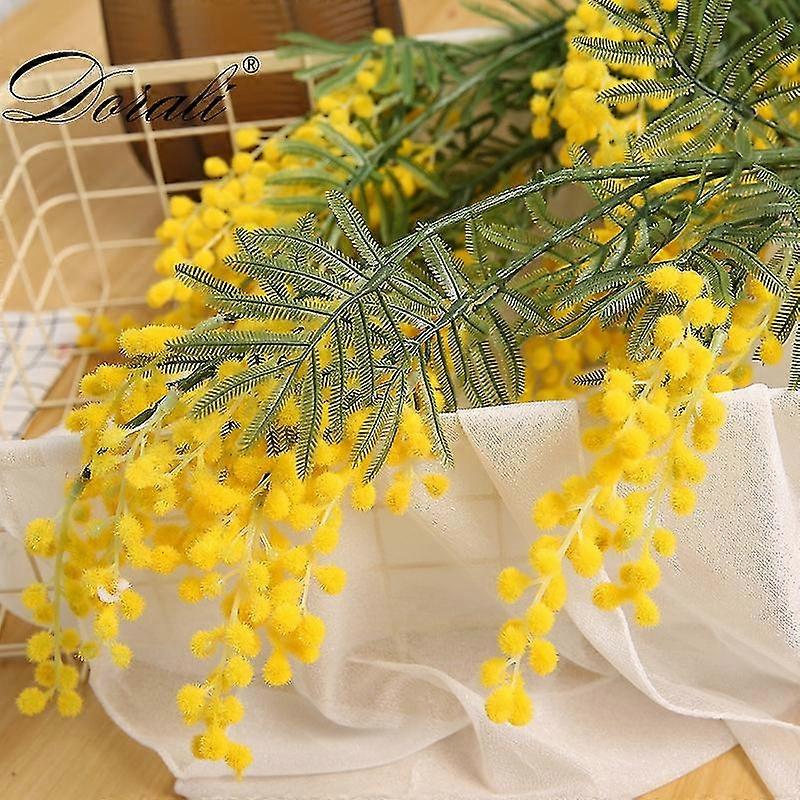 86cm 3 Branches Artificial Acacia Yellow Mimosa Pudica Spray Fake Silk Flower Wedding Party Event Decor Red Bean Plant For X'mas