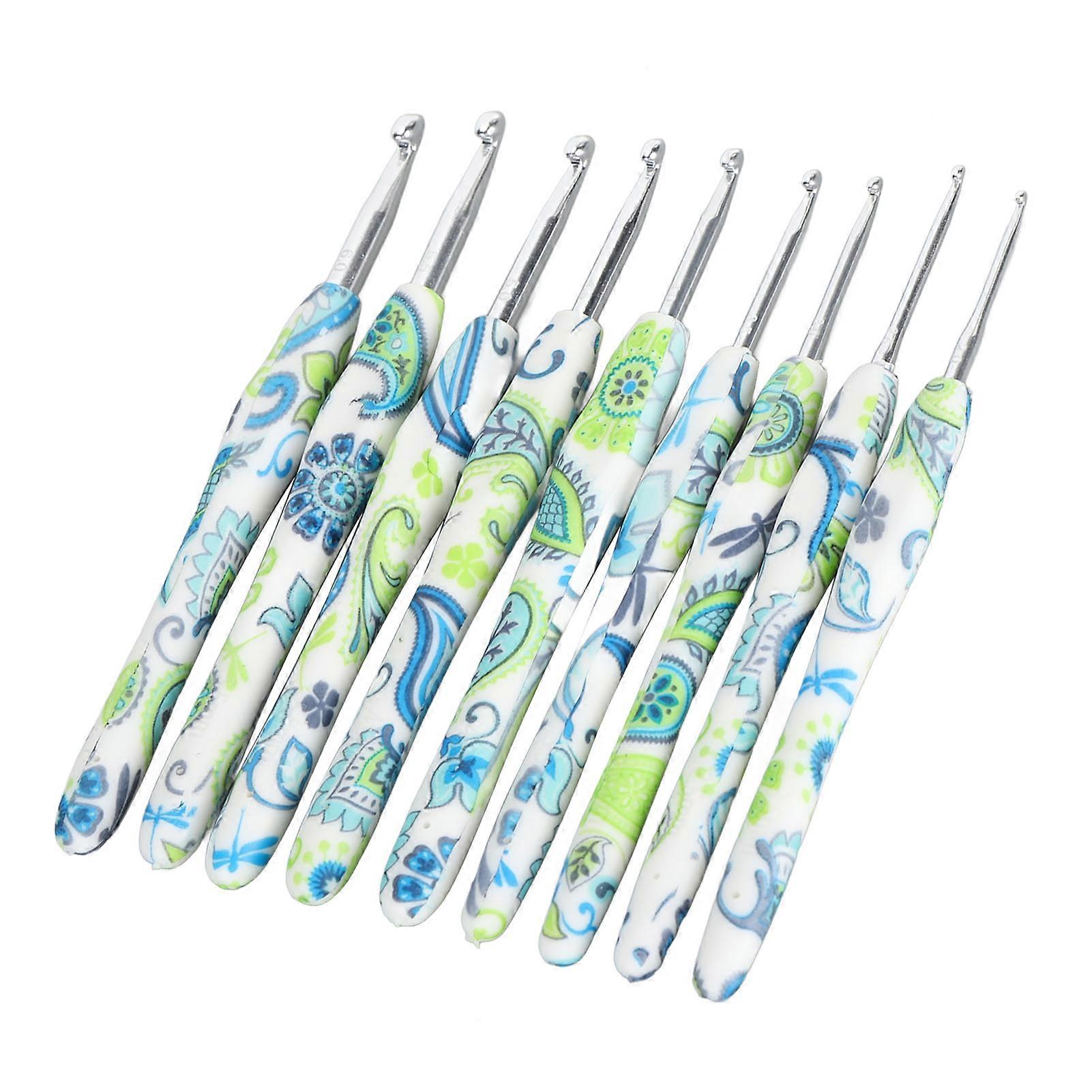 9PCS Knitting Crochet Kit 2.0‑6.0mm Ergonomic Soft Handle Aluminium Crochet Hook Set for Handcraft