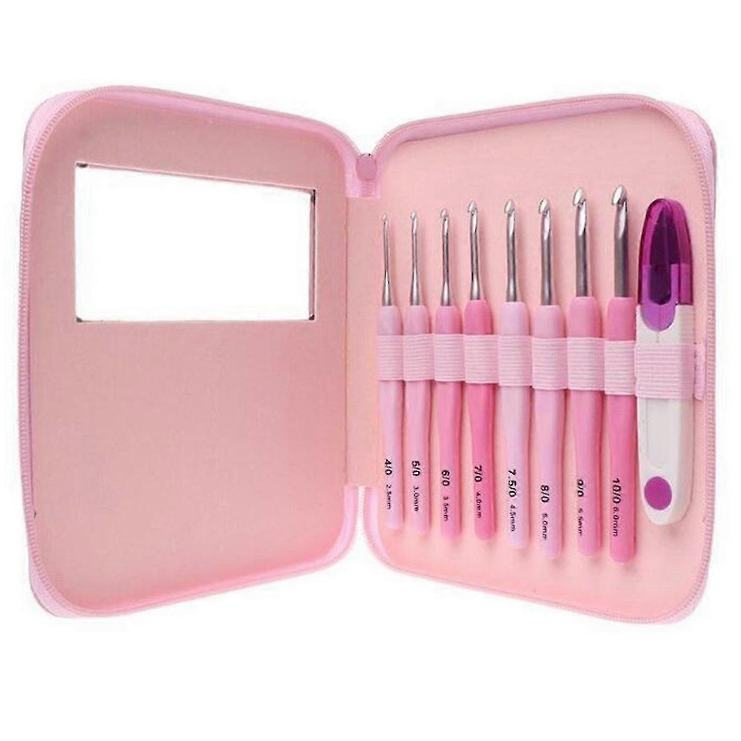 9pcs Crochet Hook Kit Ergonomic Soft Handle Aluminum Hooks Set with 8 Sizes for DIY Crafts Knitting Crocheting Supplies