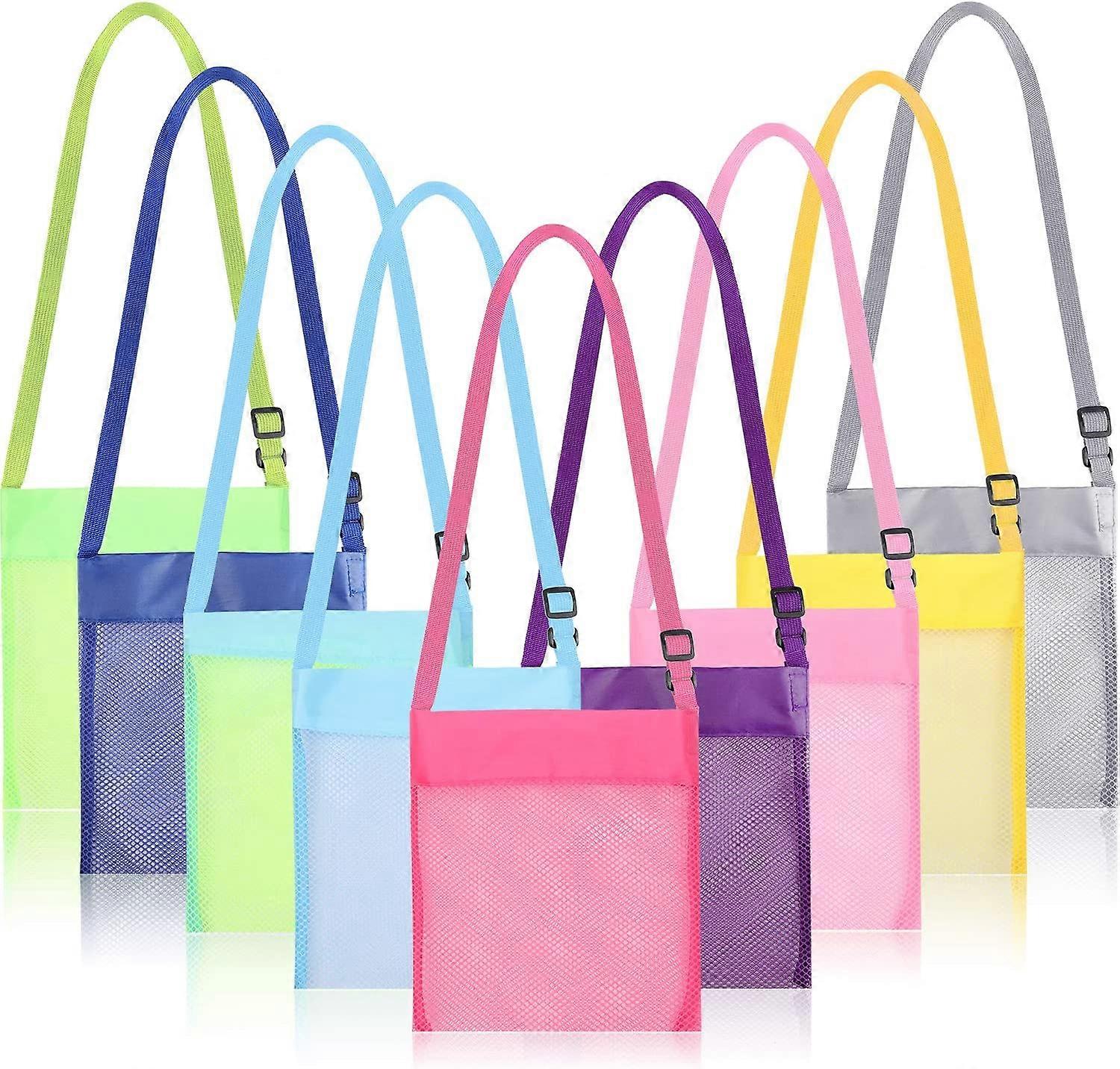 9 Pieces Shell Bags for Kids Colorful Mesh Seashell Bags Mesh Beach Bags Mesh Bag Storage Bag With Adjustable Strap for Treasure Shell Toy Storage, 9
