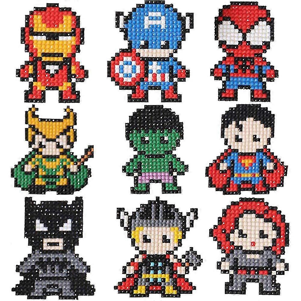 9pcs Superhero Diamond Painting Stickers Kits For Kids, Diy 5d Super Hero Diamond Art Mosaic Stickers By Numbers Kits