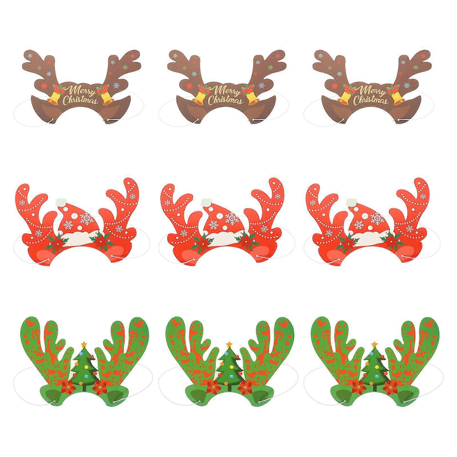 9Pcs Christmas Reindeer Antler Paper Hats Set for Xmas Party Decorations