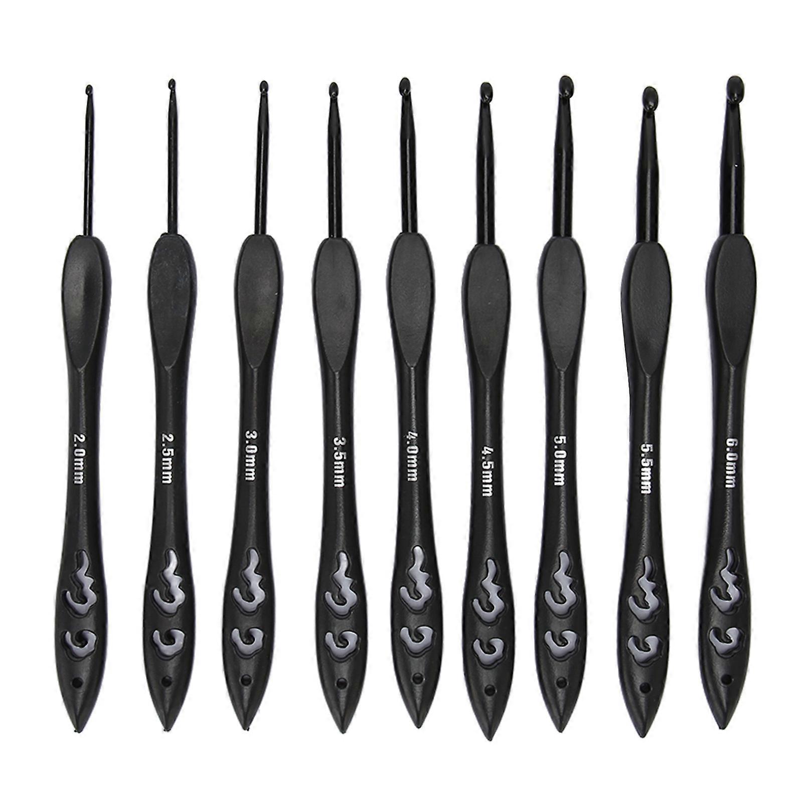 9pcs Crochet Hooks Set 2.0 to 6.0mm Ergonomic Handle Reduce Cramps Aluminum Crochet Hook for Crochet Lovers Black