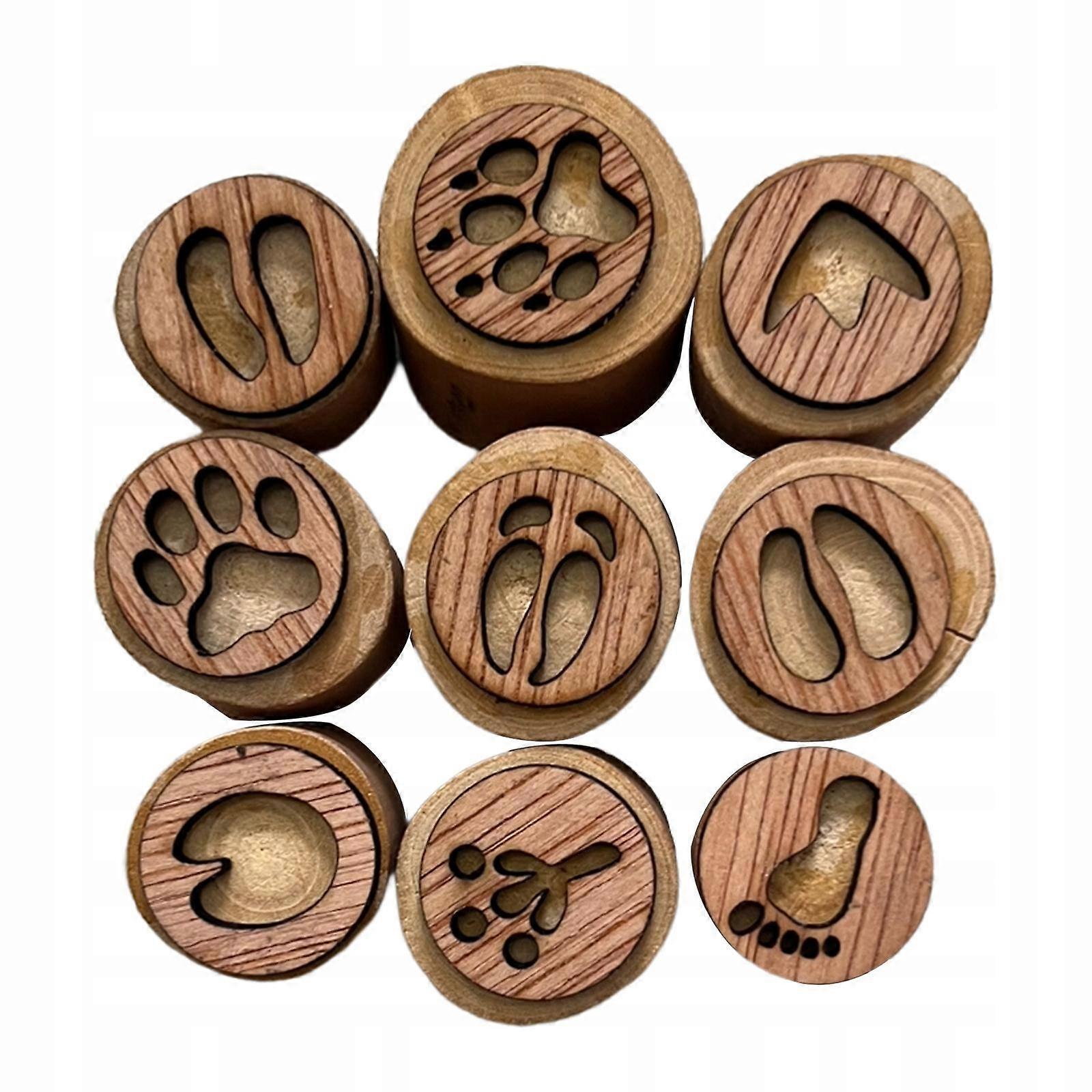 9pcs Wooden Stamp Set Animal Track Stamps Style C S 2.5-3.5cm