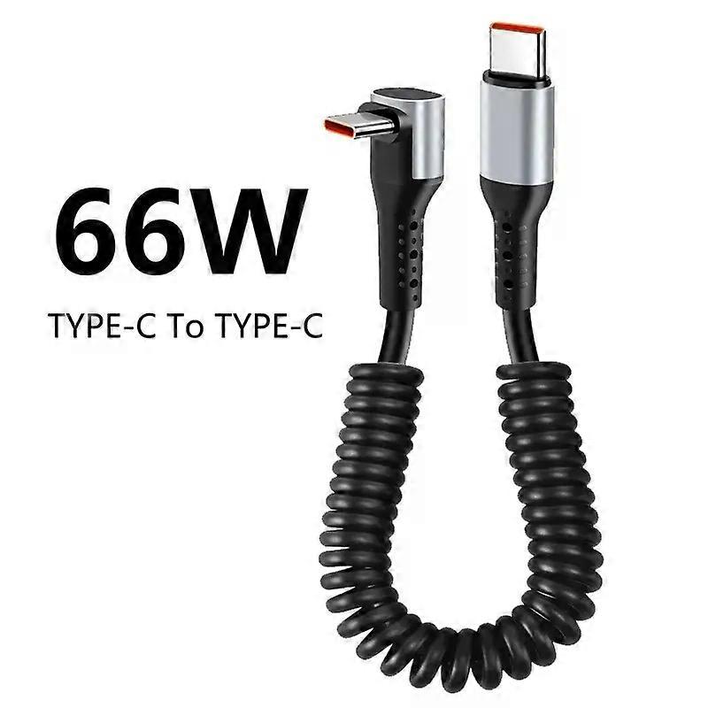 90 Degree Elbow Car Spring Data Cable 6A Fast Charging USB Type C Cable for Samsung Xiaomi Huawei USB C Cable