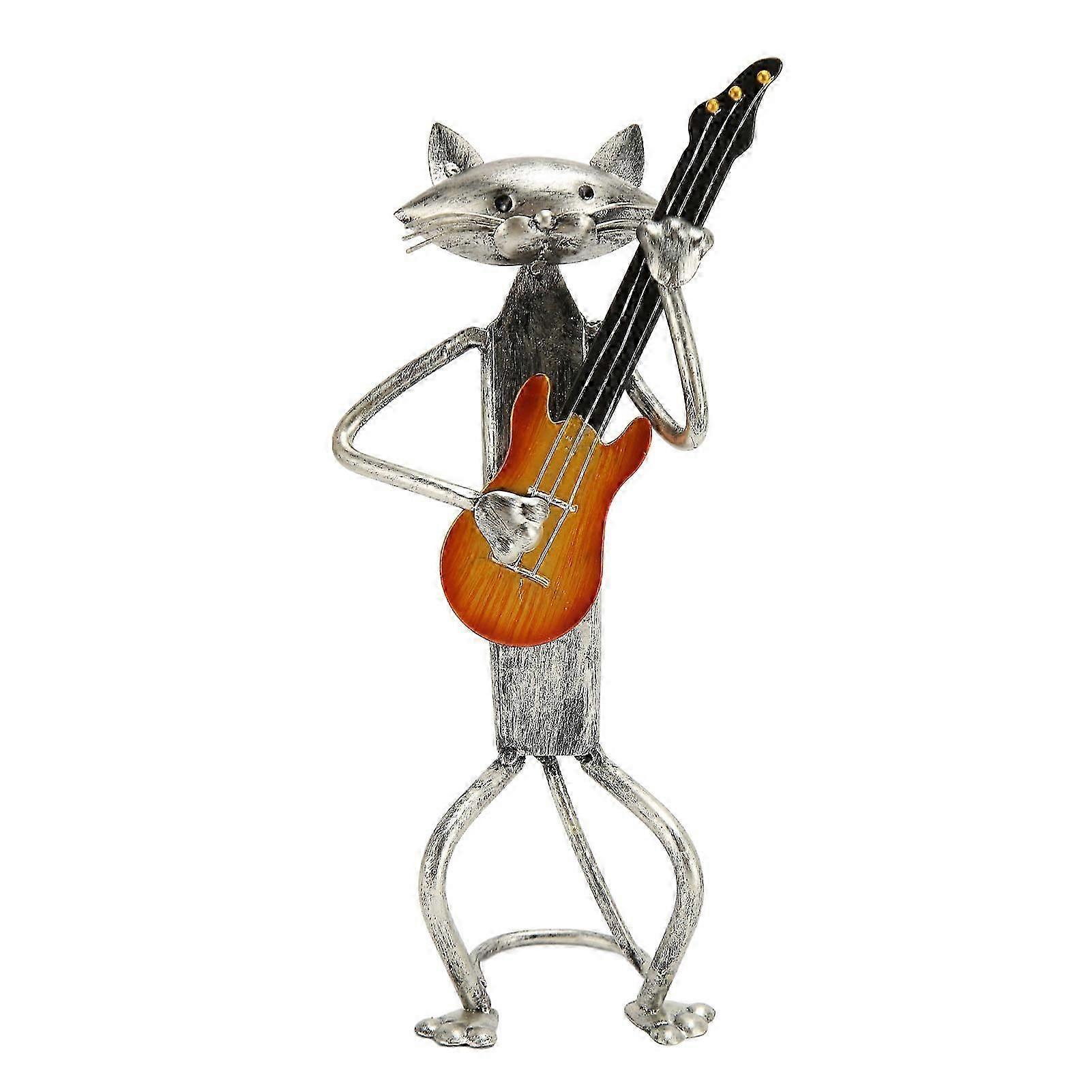 A Playing Guitar Cat Metal Sculpture Baked Paint Craft Colorfast Lively Cute Standing Cat Figure Cat Statues Home Decor