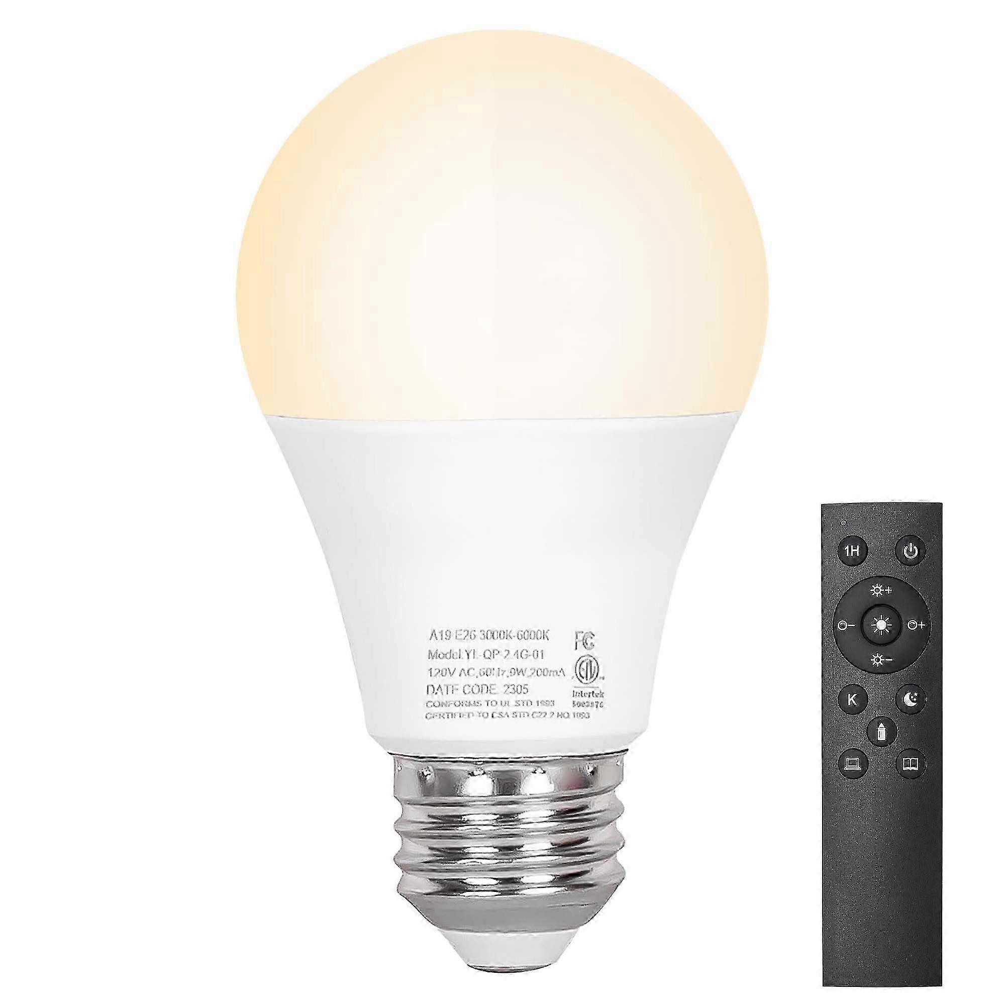 A19 LED Bulb with Remote Control, Dimmable 9W (60W Equivalent), 3000K-6000K Adjustable Color, E26 Base, 25000+ Hours Lifetime