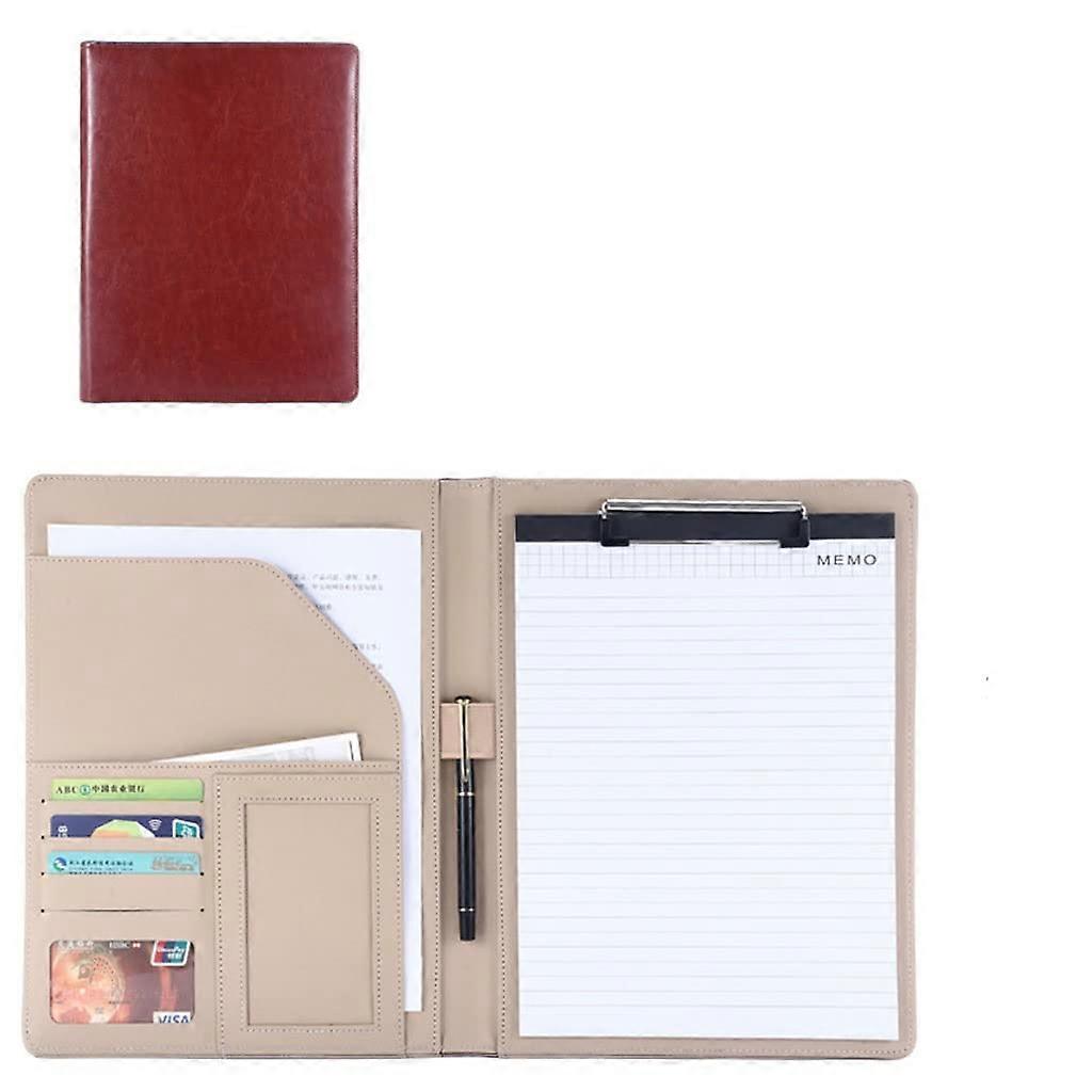 A4 Writing Case Portfolio Document Folder Leather Clipboard for Meetings Brown