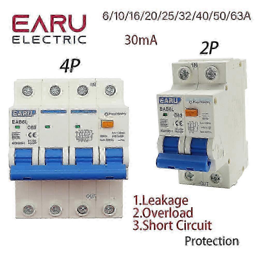 AC230V MCB Leakage Protector RCBO Overload Short Circuit Protection 2P 4P 30mA Residual Current Circuit Breaker Switch RCCB RCD