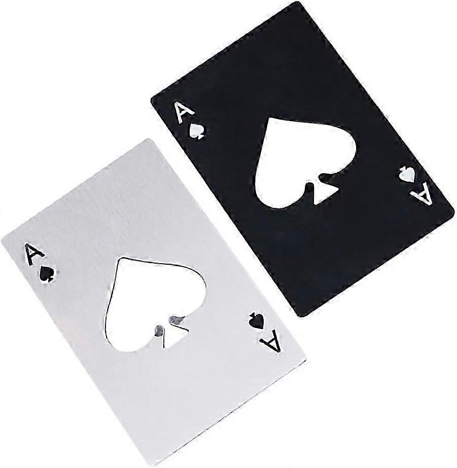 Ace of Spades Bottle Opener Credit Card Size Pocker Cap Opener Portable Stainless Steel Can Opener (2 Pack Black & Silver)
