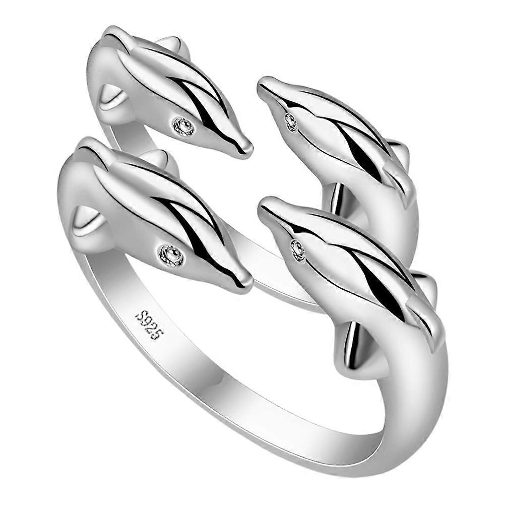 Adjustable Ring Double Dolphin Open Ring for Decoration 2Pcs Silver Copper
