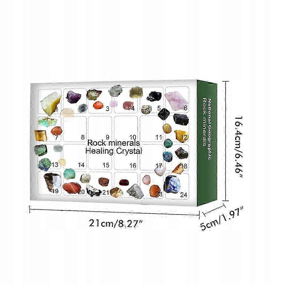 1 box 24-grid red green gift box Christmas countdown 24 days Guess music blind box small prezent (box) juefish 24-grid redhead blind box and airplane packaging 1. ROCK COLLECTION: This set includes 24 pieces of natural rocks and minerals, the perfect standalone collection or addition to any child's rock collection. 2. RECOGNIZE AND LEARN – The full-color educational guide includes information about each gem in the set, and you can use the magnifying glass to see more details of each stone, gemstone, and crystal. Great starter kit for boys and girls interested in geology. 3. CONVENIENT STORAGE AND DISPLAY: The included, well-made packaging has a separate compartment for each sample. Each of them named and allows you to see all the samples inside. 4. GREAT IDEA FOR PREZENT EDUCATIONAL: This unique and educational rock collection is a great prezent for children who are interested in geology. Also great for beginners or experienced gemstone collectors. And this can be used in classes, to decorate the house, to inspire the imagination.
