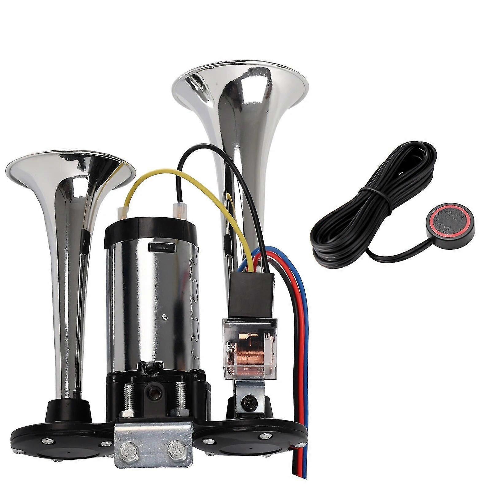 ALLREY 12V Air Horn Double Tube Conjoined Pump Horn Super Loud With Relay Compressor For Vehicle Truck Boat Motorcycle Accessory~57777
