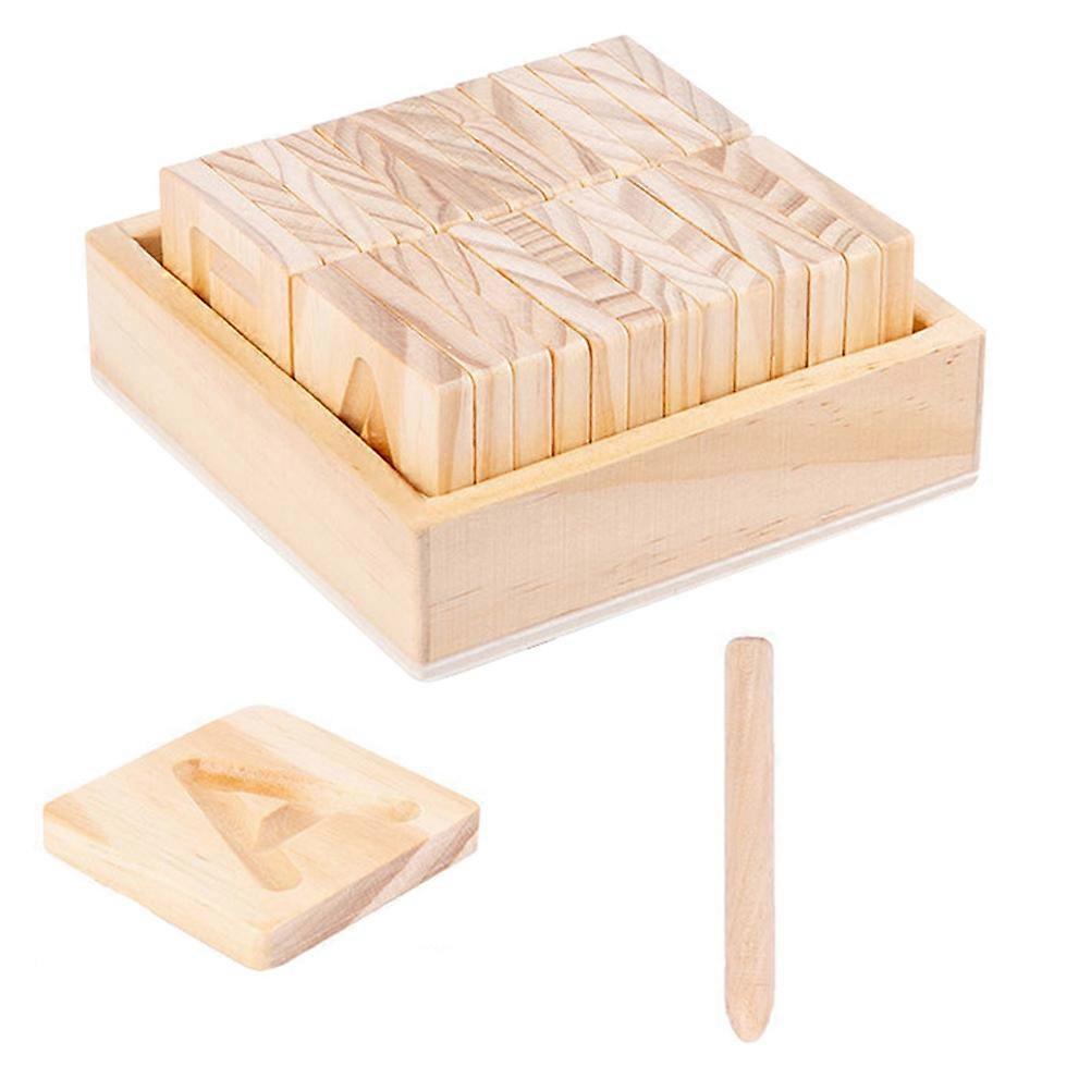 Alphabet Recognition Toy For Sets Wooden Plaything For Indoor Learning Beige Color Educational Use With 52 Pieces
