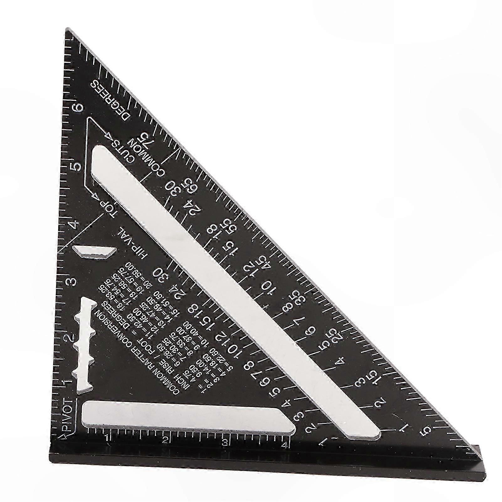 Item Type: Triangular Ruler Material: Aluminum Color: Black Measuring Range: 0 to 7 inches Angle: 0 to 90 Degrees
