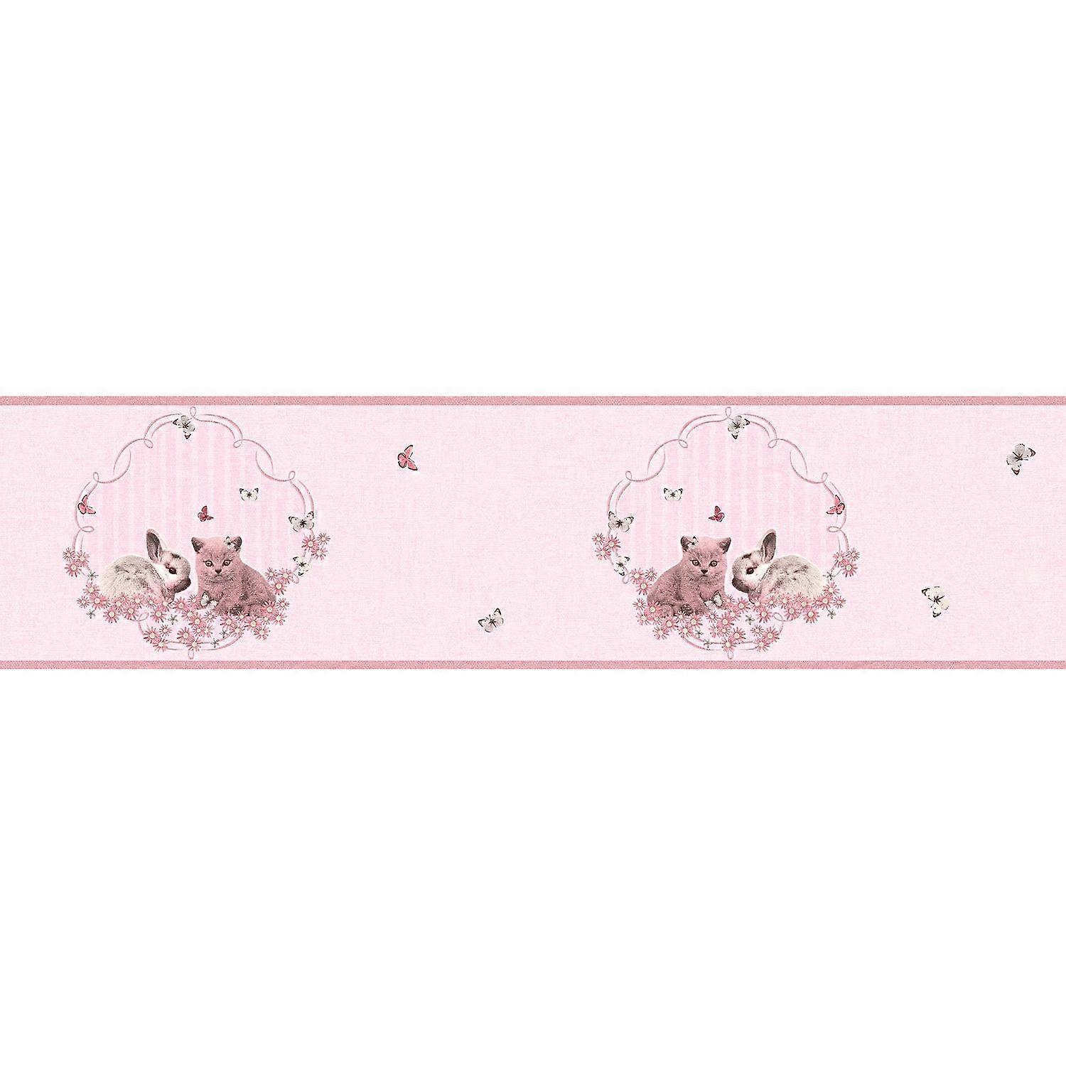 Carta da parati con animali Profhome 355671-GU Bordo liscia con disegni di animali opaca rosa rosa-fucsia 0,65 m2