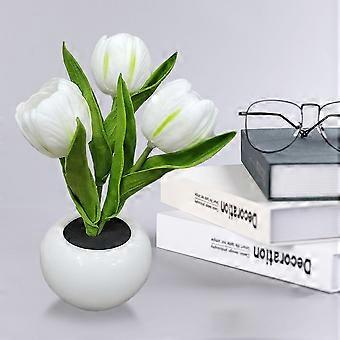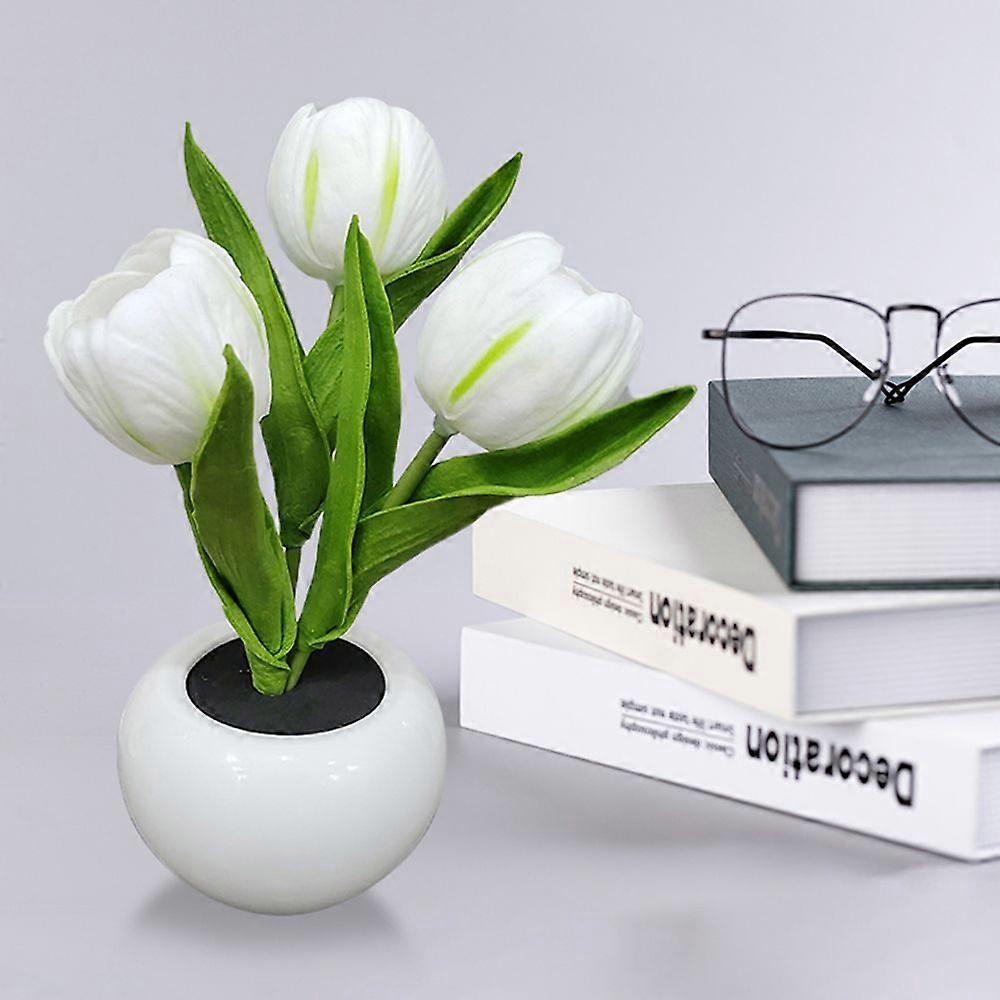 Aoresac Desktop LED Tulip Lamp Artificial Flower Night Light Bouquet Lamp 3 Heads with Ceramic Vase for Bedroom Bedside Lamp Ambient Light Decoration