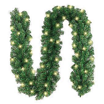 Artificial Christmas Garland With String Lights Diy Rattan Wreath Xmas