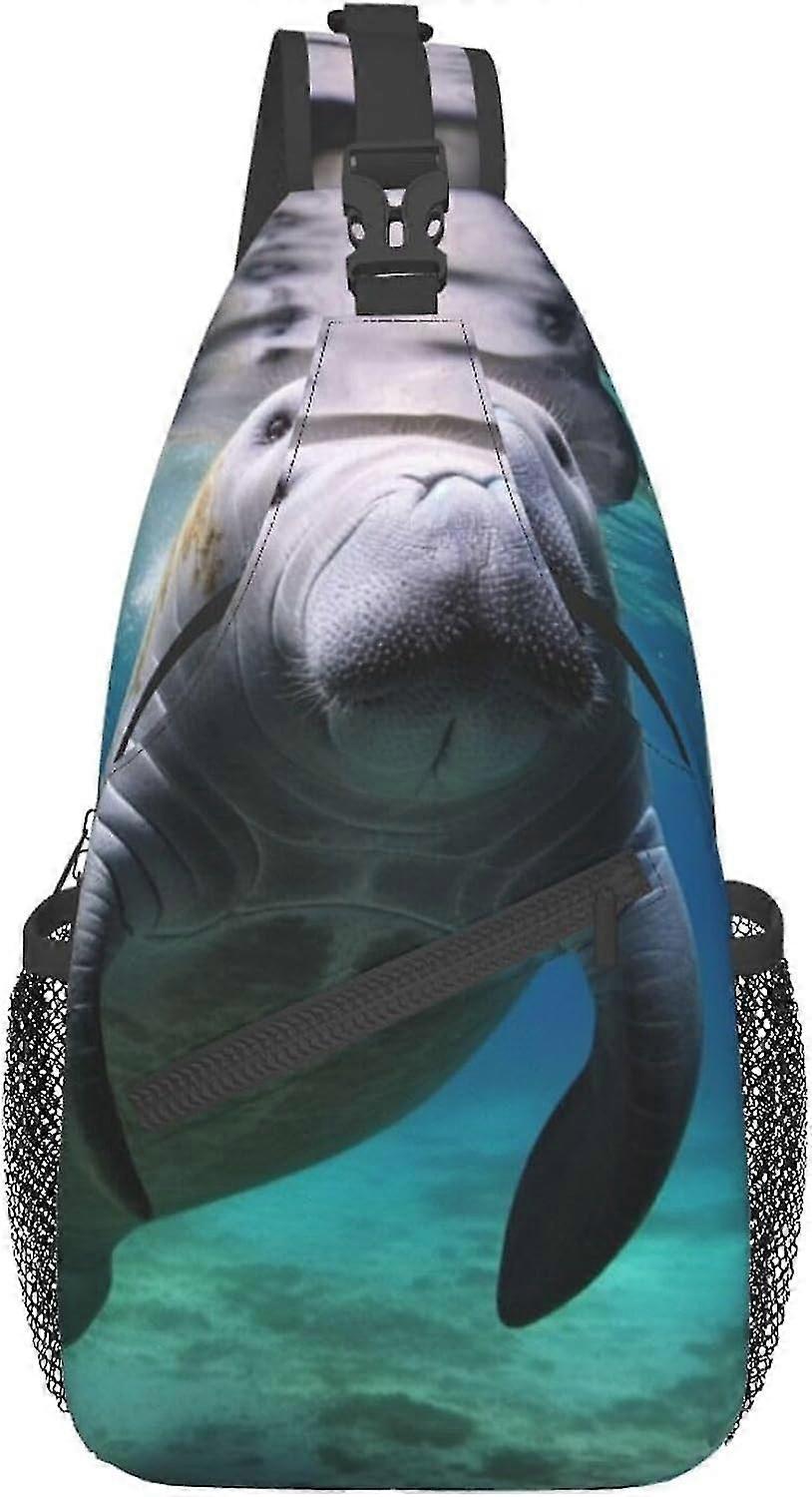 AU864 Ocean Animal Manatee Crossbody Sling Backpack Sling Bag Chest Bag Shoulder Bag Casual Day Pack For Unisex