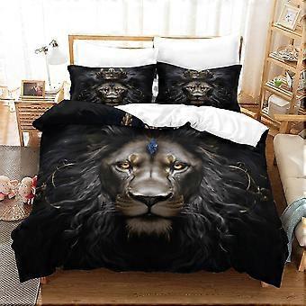 o5428 Lakanat Kruunun leijonakuninkaan leijona mittapainettu mikrokuitupussilakana ja lakanasetti, pehmeät ja kauniit mikrokuitutyynyliinat, joissa